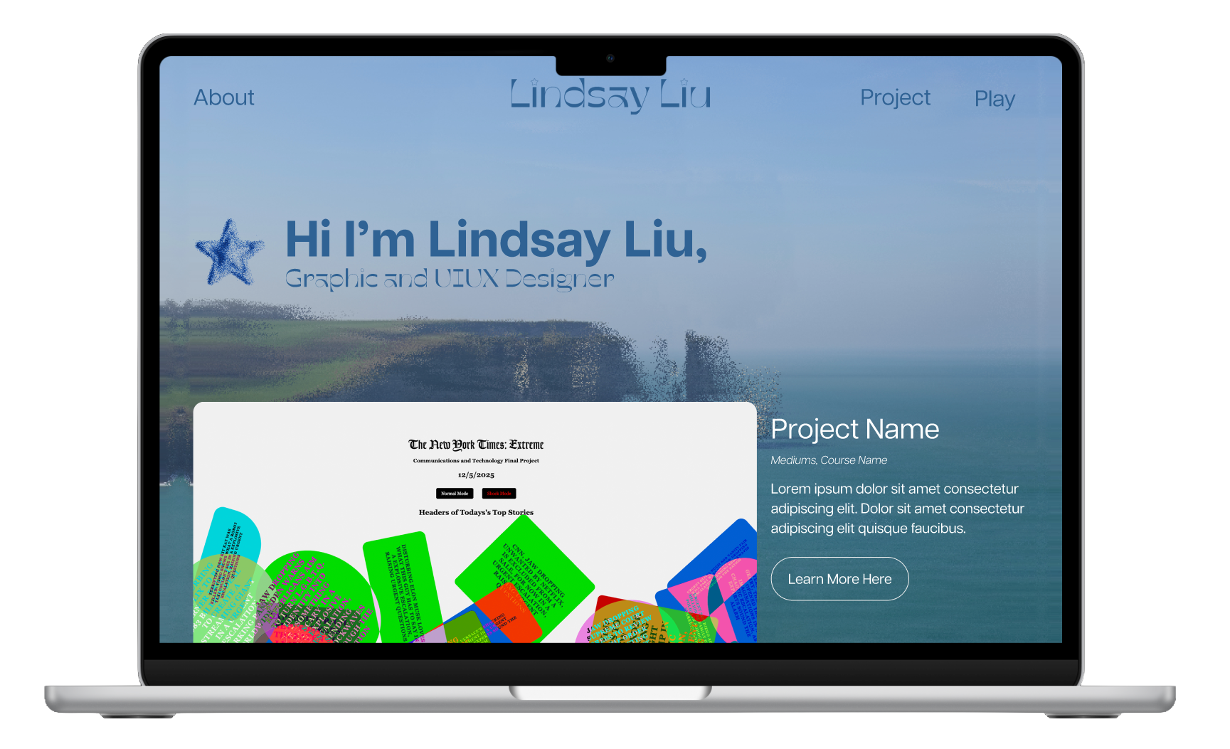 This assignment involved creating a personal brand style guide, including a logo, color palette, and typographic system, and demonstrating its application through digital and physical mockups such as a personal website and printed material.