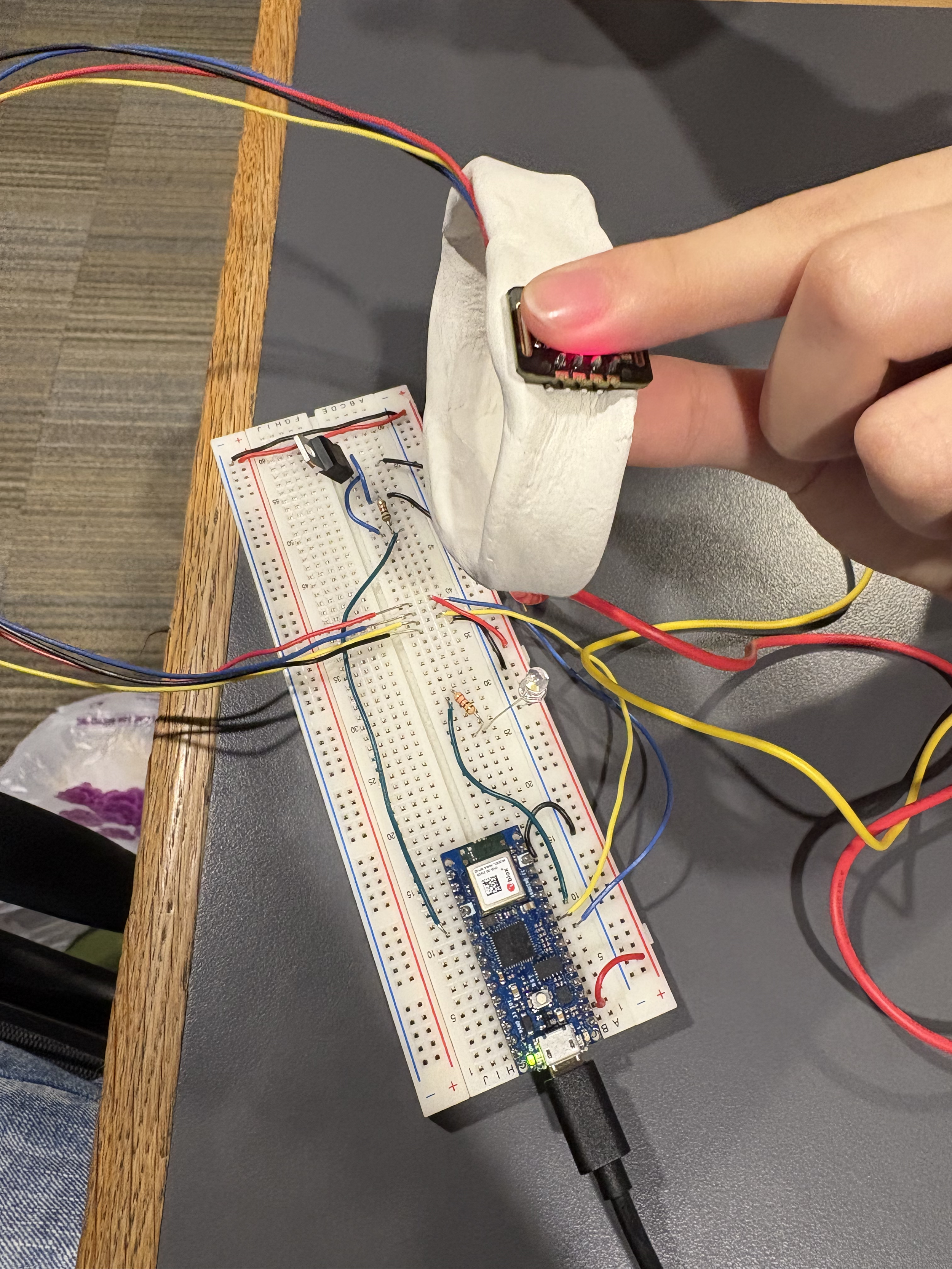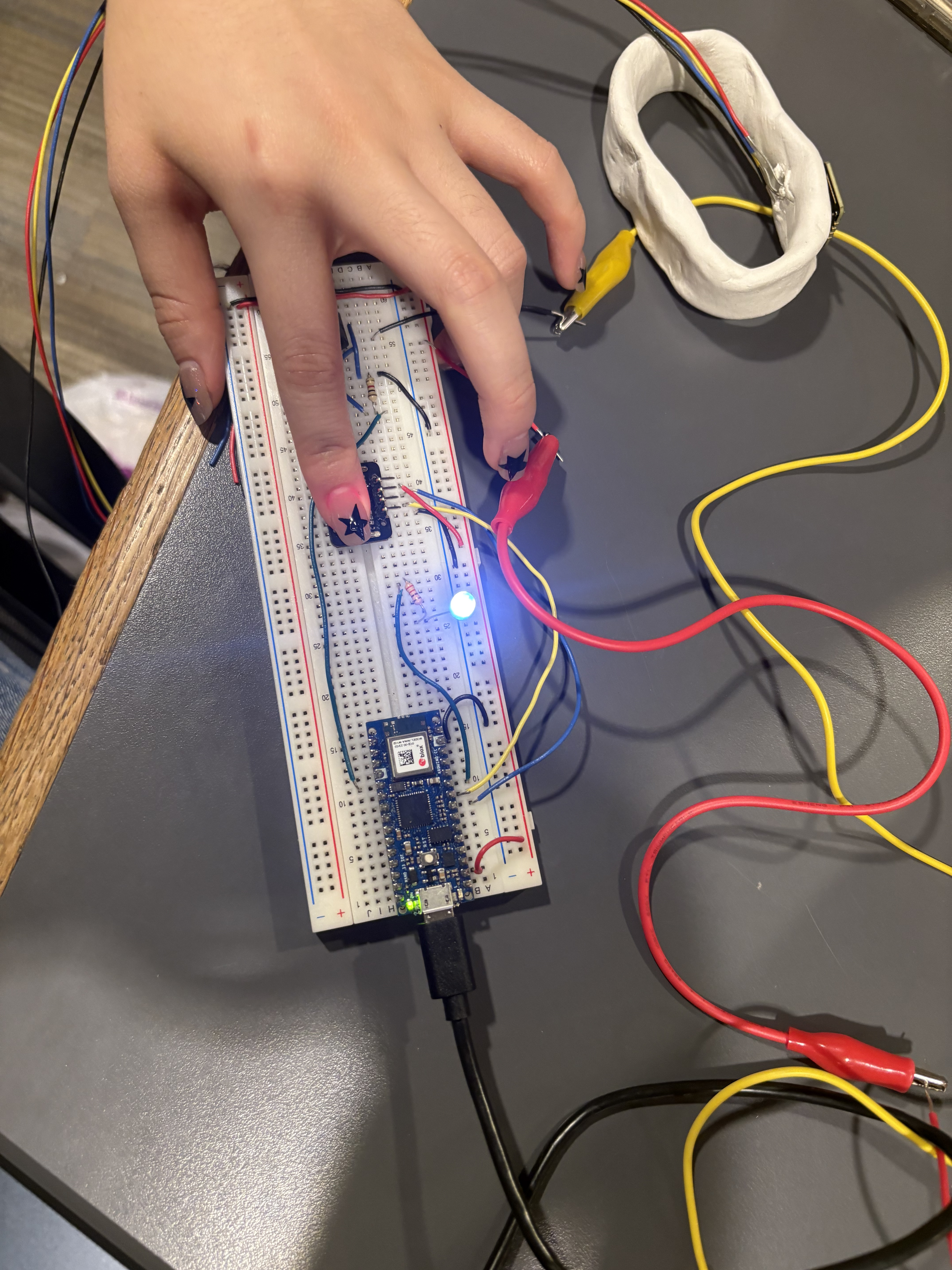 This project moved from a technical exercise in sensor reading to an exploration of human intimacy. By using a sensor that picks up stress and emotion, we’ve created an "interactive art piece" that makes the internal state of a friend or stranger unavoidable and felt.